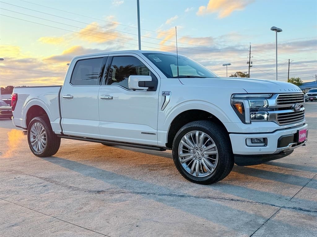 Star White Metallic Tri-Coat 2025 Ford F-150 Platinum 4WD 10-Speed Automatic 3.5L PowerBoost Full-Hybrid V6 3.5L PowerBoost Full-Hybrid V6, 4WD.